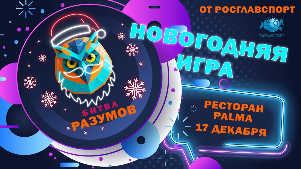 РОСГЛАВСПОРТ приглашает вас принять участие в корпоративном интеллектуальном турнире «Битва Разумов 2025: Новогодняя игра», который пройдёт 17 декабря в Санкт-Петербурге!